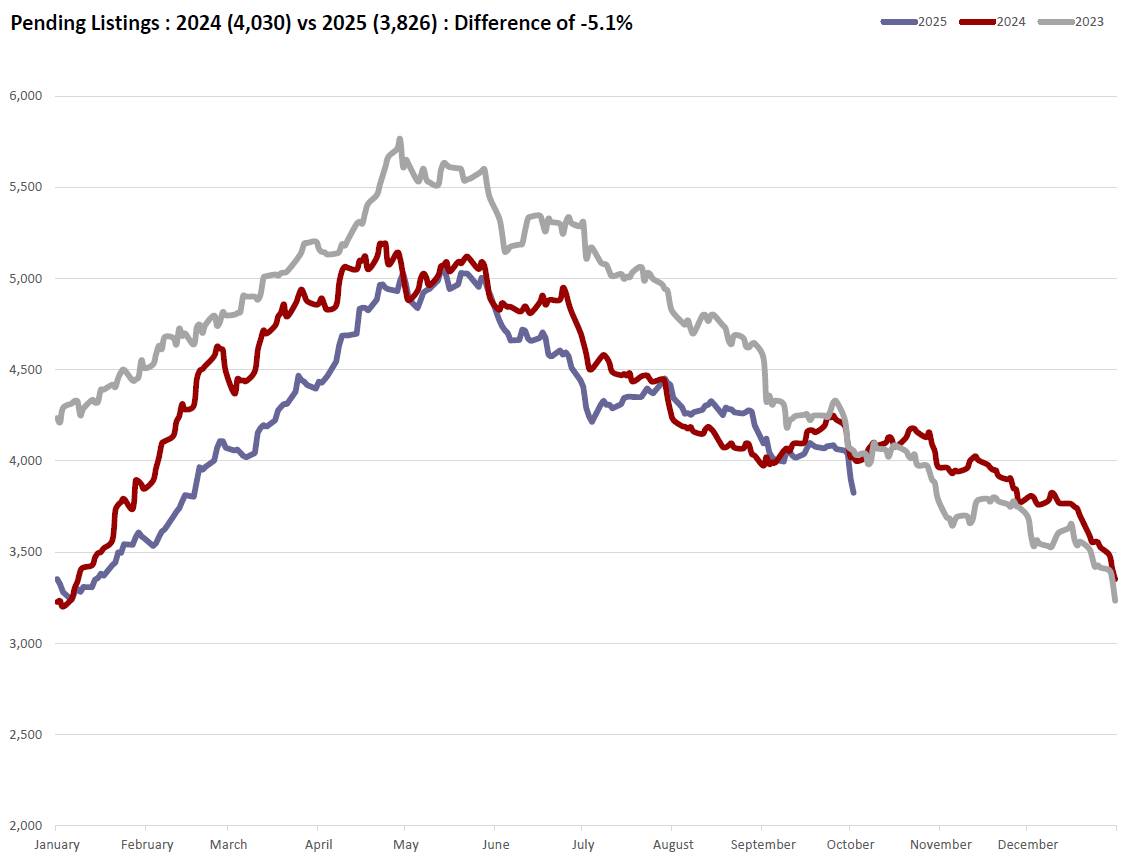 For buyers, this environment provides significant leverage. With more than sixteen thousand active listings available, buyers have a wider range of options than at any time in recent memory. The sharp decline in pending contracts means competition is thinner, allowing buyers to negotiate on price and terms. This is especially important as we head deeper into the fall season, a period that typically sees reduced buyer urgency even in strong years.